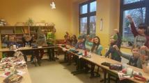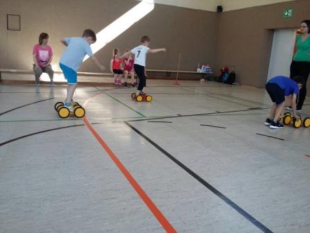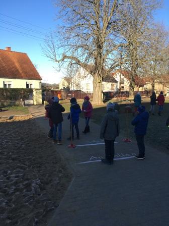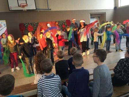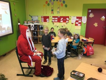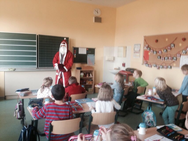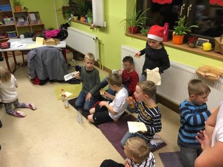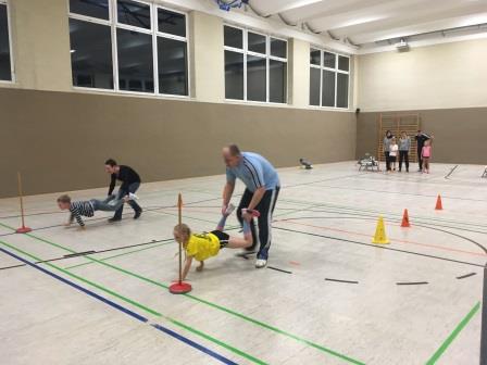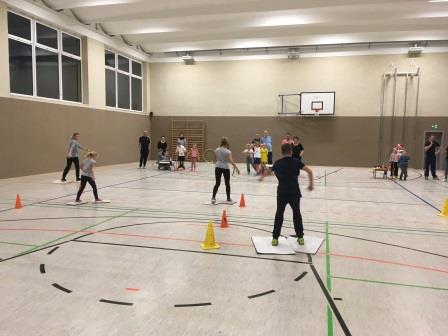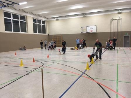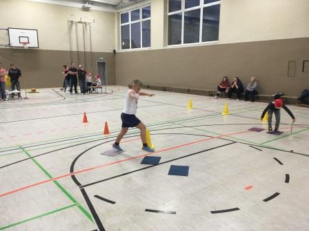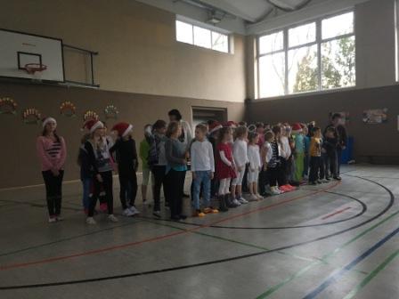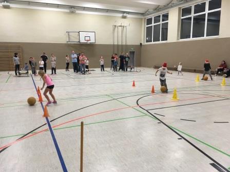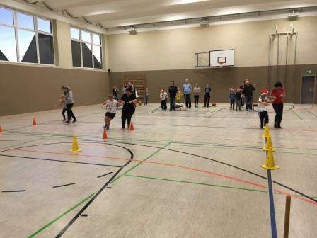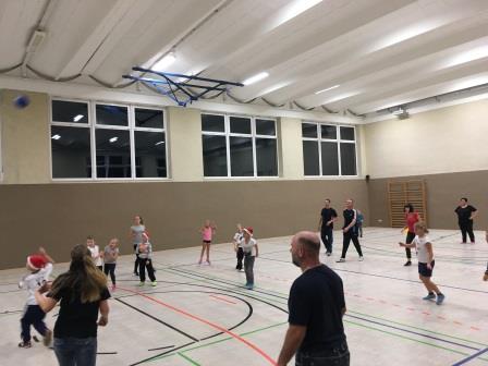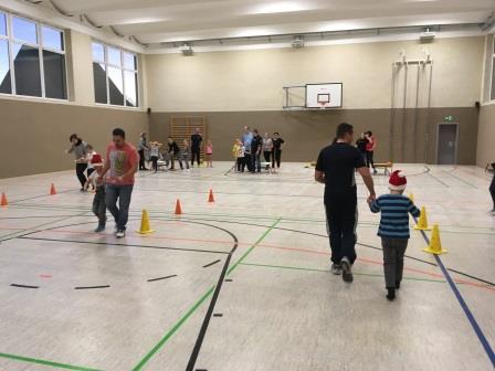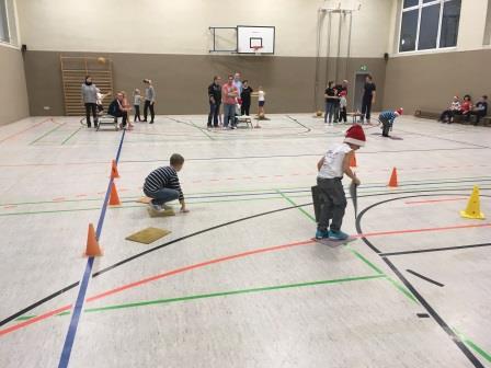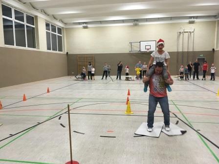 Am Freitag, den 2. Dezember 2016, trafen sich die Kinder und Eltern der SEP 2b, um eine gemeinsame, durch den „Wichtel-Sportverband“ organisierte, Weihnachtsolympiade zu bestreiten. Zusammen mit einem Elternteil trat jedes Kind für seine Mannschaft an. Neben „Eisschollen-Lauf“, „Teppich-Skifahrt“, „Geschenke-Transport“ und „Nordpol-Dreibeinlauf“ gab es noch andere sportliche Disziplinen zu bestreiten. Alle Sportler gaben ihr Bestes und zeigten großen Ehrgeiz, um die einzelnen Wettkämpfe zu gewinnen. Am Ende spielten die Kinder gegen die Erwachsenen Zwei-Felder-Ball. Da Sport hungrig macht, gab es nach den anstrengenden Wettkämpfen für alle Pizza und Hotdogs, um wieder zu Kräften zu kommen. |