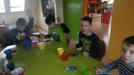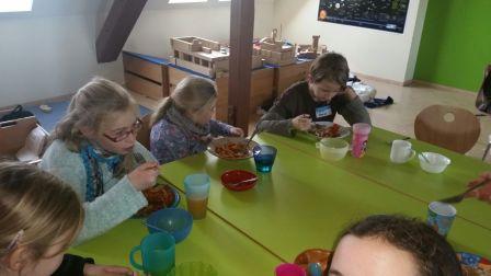 Nach der ersten Nacht im KIEZ Grünheide trafen sich alle zum gemeinsamen Frühstück und freuten sich auf die bevorstehenden Ausflüge und Unternehmungen des Tages ...